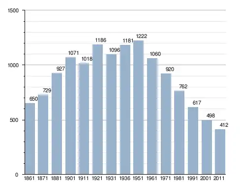 في سنة 1861 بلغ عدد السكان 650 نسمة، وتطور العدد ليصل في سنة 2011 لـ 412 نسمة.