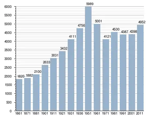 في سنة 1861 بلغ عدد السكان 1٬820 نسمة، وتطور العدد ليصل في سنة 2011 لـ 4٬952 نسمة.
