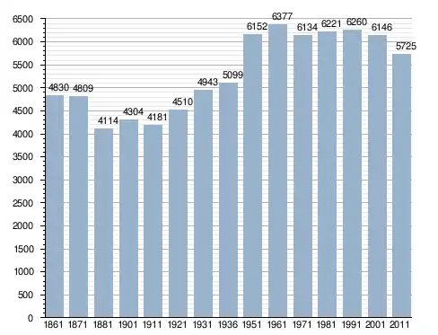 في سنة 1861 بلغ عدد السكان 4٬830 نسمة، وتطور العدد ليصل في سنة 2011 لـ 5٬725 نسمة.