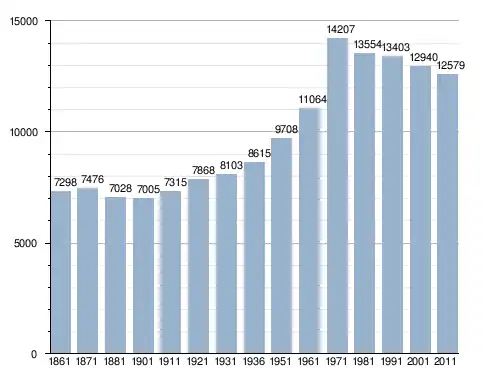 في سنة 1861 بلغ عدد السكان 7٬298 نسمة، وتطور العدد ليصل في سنة 2011 لـ 12٬579 نسمة.