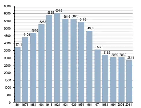 في سنة 1861 بلغ عدد السكان 3٬714 نسمة، وتطور العدد ليصل في سنة 2011 لـ 2٬844 نسمة.