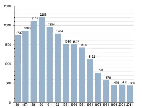 في سنة 1861 بلغ عدد السكان 1٬737 نسمة، وتطور العدد ليصل في سنة 2011 لـ 436 نسمة.