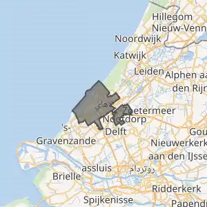 ![]() Highlighted position of The Hague in a municipal map of South Holland الموقع في جنوب هولندا | ||||||||||