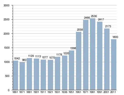 في سنة 1861 بلغ عدد السكان 1٬042 نسمة، وتطور العدد ليصل في سنة 2011 لـ 1٬800 نسمة.