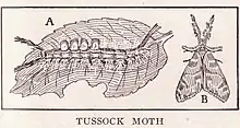 - عثة راستي توسوك (Rusty tussock moth) أو فابورر (Vapourer)، واسمها العلمي Orgyia antiqua