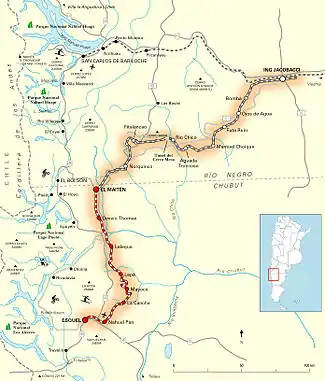 في عام 1908، خططت حكومة الأرجنتين لإنشاء شبكة من السكك الحديدية عبر منطقة باتاغونيا. بحيث يربط خطان رئيسيان من سان كارلوس دي باريلوتشي في وسط جبال الأنديز مع الموانئ البحرية لسان أنطونيو أويستي على الساحل الأطلسي في الشرق، وبورتو ديسيدو على الساحل إلى الجنوب الشرقي. كان من المقرر بناء فروع لربط الخط الرئيسي مع بحيرة بوينس آيرس (الاتصال في لاس هيراس) وكومودورو ريفادافيا (الاتصال في سارمينتو). ويتم توصيل منطقة Esquel وTrevelin عبر خط فرعي إلى Ingeniero Jacobacci. وتقوم الشبكة بأكملها بالاتصال ببوينس آيرس عبر San Antonio Oeste.