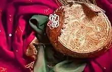 تُصنع من قطعتين من القماش ويكونان بلونين مختلفين، عادة ما يكونان داكنين وتكون مطرّزة بخيوط من الذهب .[3]