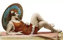 المايوه النسائي نوعان الأول قطعة واحدة مكشوف الظهر والكتف وكامل السيقان والنوع الثاني يطلق عليه البكيني وهو عبارة عن قطعتان لا تغطي القطعة الأولي سوى الثدي ـ أو الحلمات فقط ـ والقطعة الثانية للأجزاء السفلية. وهناك بعض النساء لا يفضلن ارتداء القطعة الأولى التي تغطي الثدي ويفضلن السباحة والتشمس عاريات الصدر ويسمى ذلك توبلس