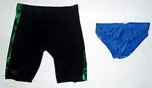 مايوه الرجال عبارة عن قطعة واحدة تغطي فقط خصر الرجل من الأمام (الأعضاء التناسلية) والخلف (المؤخرة).