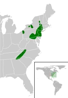 أما الجمهرة الجنوبية فأقل عددًا بكثير من الشمالية، حيث عُثر على 96 مستعمرة لها فقط حتى الآن،[31] وهي تعيش في ولايات كارولينا الشمالية، وكارولينا الجنوبية، وجورجيا، وڤرجينيا، وتينيسي.[12] شهدت هذه المنطقة بالذات تجفيف حوالي 90% من الأراضي الرطبة الجبلية لغرض إقامة مستوطنات بشرية ومزارع،[32] الأمر الذي كان له أثر مروّع على الحياة البرية الفطرية المقيمة، يتجلّى بكون لجآت هذه الجمهرة أكثر تبعثرًا من لجآت الجمهرة الشمالية، وبسكنها موائل أكثر علوًا، يصل ارتفاعها حتى 1,373 مترًا (4,505 أقدام).[31]