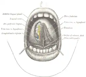لجام اللسان أو لجيم اللسان (بالإنجليزية: frenulum of tongue) عبارة عن طية ناصفة من المخاطية تمتد من أرضية الفم وحتى الخط الناصف على الوجه السفلي للسان، يوجد جانب النهاية السفلية للجام بروز في كل جانب يدعى اللحيمة تحت اللسان.[1][2][3]