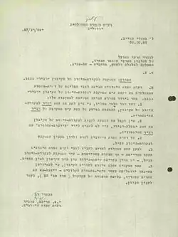 رسالة من لجنة التسمية الحكومية إلى أمانة حركة كيبوتس أرتزي بشأن تسمية كيبوتس دفير . 30 أكتوبر 1951
