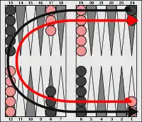 - إن الفائز هو من يستطيع إدخال جميع قطعه إلى الجهة في ناحيته ومن ثمّ القيام بإخراجها.