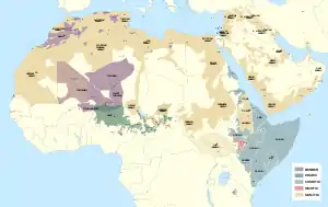 ![]() {{{اسم الخريطة}}} مناطق انتشار اللغات الأفراسيوية | |