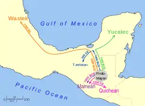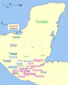 ![]() خريطة لأماكن تحدث لغات المايا | ||||