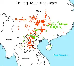 ![]() {{{اسم الخريطة}}} لغات همونجيك بالأحمر ,لغات منيك بالأخضر | |