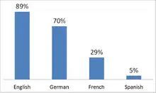 | اللغات الأجنبية الرئيسية | اللغة الإنجليزية (89%)، اللغة الألمانية (70%)، اللغة الفرنسية (29%)، اللغة الأسبانية (5%) | |||
