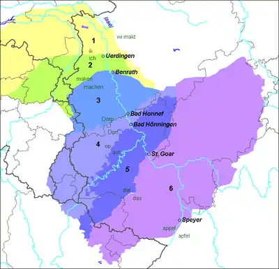 - هناك لهجة فرانكونية دنيا أعطت مكانة للغة إقليمية وهي الليمبورخية، التي يتحدث بها في جنوب شرق ليمبورغ . وعدد المتحدثين بها 825.000 متحدث. ورغم محاولات الاعتراف بها كلغة رسمية (والتي لاقت بعض النجاح) فمن المهم أن نلاحظ أن الليمبورخية في الواقع تتكون من عدد كبير من اللهجات التي تشترك في بعض الجوانب، ولكنها مختلفة تماماً.[3]