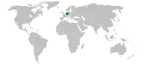 ![]() الانتشار الجُغرافي للُغة الإشارة الألمانيَّة: مناطق تعدّها لغة رسمية