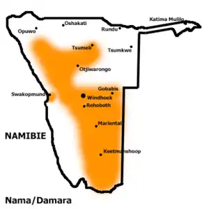 ![]() {{{mapalt}}} توزيع لغة ناما في ناميبيا. | |