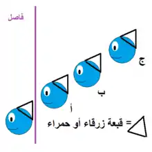 وضع السجان ثلاث منهم في صف واحد.الرابع خلف جدار (أو في غرفة منفصلة) ، وأعطى الأربعة كلهم قبعات.وأعلمهم أن اثنين من هذه القبعات حمراء واثنين زرقاء، كل سجين يرتدي قبعة، وكل سجين يعرف لون قبعة الذين أمامه ولا يرى قبعته، الرجل الرابع خلف الجدار لا يرى قبعته ولا يراها أحد ولا يرى هو قبعات الآخرين أيضا، ولا يسمح بأي نوع من الاتصال بين المساجين.