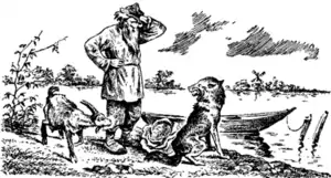 يريد فلاح نقل ثعلب، أوزة وحقيبة من الحبوب من ضفة نهر إلى أخرى في زورق لا يوجد به متسع إلا لكائن أخر معه. يواجه الفلاح بذلك ثلاثة قيود هي: