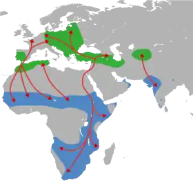 - سلالة اللقلق الأبيض، ليينوس 1758 : أوروبا، شمال أفريقيا، غرب آسيا فصل الشتاء يقضيه في جنوب أفريقيا.