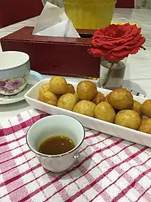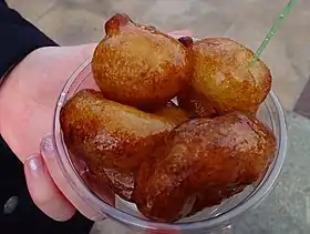 - "Greek honey balls (loukoumades)". مؤرشف من الأصل في 06 نوفمبر 2017. الوسيط