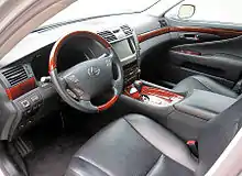 تتميز المقصورة الداخليَّة لسيارة إل إس 430 بزخارف من خشب الجوز على لوحة القيادة والأبواب العلوية، إلى جانب جلد شبه الأنيلين وفتحات تكييف الهواء المتذبذبة.[58][62]