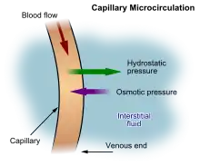 يوفر الدم العناصر الغذائية والمستقلبات المهمة لخلايا الأنسجة ويعيد تجميع النفايات التي تنتجها، الأمر الذي يتطلب تبادل المكونات الخاصة بين خلايا الدم والأنسجة. هذا التبادل ليس مباشرًا، ولكنه يحدث بدلاً من ذلك من خلال وسيط يسمى السائل الخلالي، والذي يشغل الفراغات بين الخلايا. نظرًا لأن الدم والخلايا المحيطة تضيف باستمرار المواد وتزيلها من السائل الخلالي، يتغير تركيبها باستمرار. يمكن أن يمر الماء والمذابات بين السائل الخلالي والدم عن طريق الانتشار عبر فجوات في جدران الشعيرات الدموية تسمى الشقوق بين الخلايا؛ وهكذا، فإن الدم والسائل الخلالي في حالة توازن ديناميكي مع بعضهما البعض.[4]