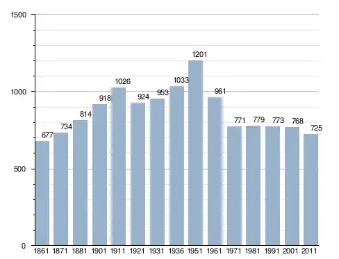 في سنة 1861 بلغ عدد السكان 677 نسمة، وتطور العدد ليصل في سنة 2011 لـ 725 نسمة.
