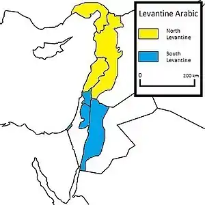 اللهجة الشامية الجنوبية وهي جزء من اللهجات الشامية وبشكل أساسي في فلسطين، وكذلك في المنطقة الغربية من الأردن (في "عجلون، البلقاء"، الكرك، المفرق، عمان ومحافظات إربد وجرش ومادبا).[2]