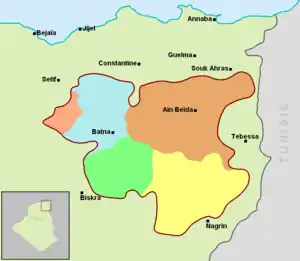 ![]() {{{mapalt}}} لتوزيع الجغرافي لللهجات الشاوية | |