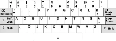 - الرموز التالية كانت تشترك في المفاتيح (الرمز الثاني يتم طباعته عند الضغط على مفتاح SHIFT):