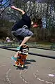 حيث يقوم المتزلجون بالسيطرة على لوح التزلج والمحافظة على التوازن ثم القيام بالحركات المثيرة الدّآلة على الجسارة والبراعة ويمكن وصفها بالألعاب البهلوانية. وتعتمد بشكل أساسي على سلسلة من الانعطافات والدوران حتى 360° مع السيطرة الكاملة على اللوح والتوازن، أو ركوب اللوح على أن تبقى العجلات الخلفية أو الأمامية مرفوعة عن الرصيف.