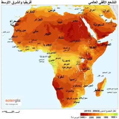 بصفة عامة ان كمية الاشعاع الشمسى الواقعة على سطح تعتمد على ارتفاع الشمس بالتسبة للأفق (خلال التغيرات الموسمية) وعلى موقعة.