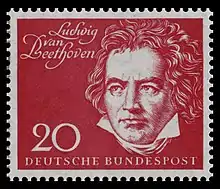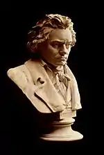 لودفيج فان بيتهوفن (بالألمانية: Ludwig van Beethoven) (17 ديسمبر 1770[17] - 26 مارس 1827) كان ملحنًا وموسيقارًا وعازف بيانو ألماني، وهوَ أحدُ الشخصيّات البارزة في الحقبة الكلاسيكيّة التي تَسبِق الرومانسيّة؛ ويُعتَبرُ من أعظَم عباقرة الموسيقى في جميعِ العصور وأكثَرهُم تأثيراً، وأبدَع أعمالاً موسيقيّة خالِدة، كما له الفضلُ الأعظم في تطوير الموسيقى الكلاسيكيّة. وتَشمَلُ مُؤلّفاتُه تِسعَ سيمفونيّات وخَمسَ مقطوعاتٍ على البيانو وأُخرى على الكمان، واثنينِ وثلاثينَ سوناتا على البيانو وسِتّة عَشر مقطوعةً رُباعيّة وتريّة؛ كما ألّف أيضاً أعمالاً للصالونِ الأدبيّ وأُخرى للجوقة وأغانٍ أيضاً.