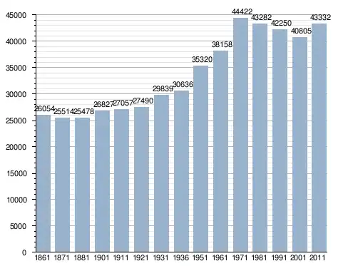 في سنة 1861 بلغ عدد السكان 26٬054 نسمة، وتطور العدد ليصل في سنة 2011 لـ 43٬332 نسمة.