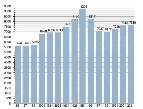في سنة 1861 بلغ عدد السكان 5٬644 نسمة، وتطور العدد ليصل في سنة 2011 لـ 7٬619 نسمة.