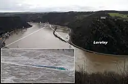 في 13 يناير 2011 انقلبت سفينة تنقل 2400 طن من حمض الكبريتيك بالقرب من مدينة سانت وفقد اثنين من افراد الطاقم مقابل لوريلي في أضيق جزء من نهر الراين مما تسبب في عرقلة حركة المرور على واحد من أكثر الممرات المائية ازدحاما في أوروبا وسط البحث المحموم عن اثنين من افراد الطاقم. [4]