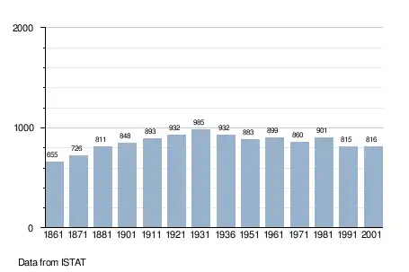 |CitationClass=تم تجاهله (مساعدة) - كل التركيبة السكانية وغيرها من الإحصاءات: الإيطالية معهد الإحصاء الوطني للإحصاءات.