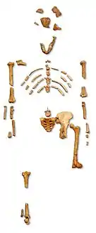 وعلى مدار الثلاثة أسابيع التي تلت ذلك، عثر الفريق على عدة مئات من قطع أو أجزاء عظام غير متكررة، وه وما أكد التكهن الأصلي بأن تلك القطع تخص فردا واحدا، وفي النهاية أعلن الفريق عن استعادة 40% من هيكل عظمي لشبيه بشر بشكل مذهل. وقد حدد جوهانسون أن شبيه البشر ذلك كان أنثى، وذلك استنادا على عظمة حوض كاملة وعظمة عَجُز، وهو ما أوضح عرض فتحة الحوض.[50] بلغ طول لوسي 1.1 مترا (3 قدم 7 بوصة)،[51] وبلغ وزنها 29 كيلوغراما (64 رطل)، وكانت (بعد إعادة تشكيلها) تبدو بشكل ما كشمبانزي. امتلكت لوسي دماغا صغيرا مثل الشمبانزي، لكن الحوض وعظام الأرجل كانت شبه متماثلة وظيفيا مع تلك التي يمتلكها البشر الحديثون، مما يوضح بيقين أن نوع لوسي كان من أشباه البشر الذين ساروا واقفين منتصبين.[52]