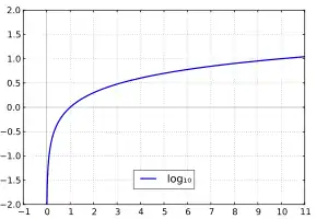 اللوغاريتم العشري اللوغاريتم ذو المبنى عشرة.[1][2][3] وهو معرف في جميع الأعداد الحقيقية الموجبة.