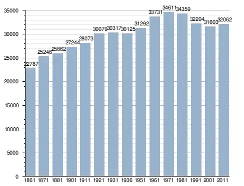 في سنة 1861 بلغ عدد السكان 22٬787 نسمة، وتطور العدد ليصل في سنة 2011 لـ 32٬062 نسمة.