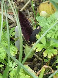 لون غمد الزهرة بنفسجي غامق إلى أحمر.