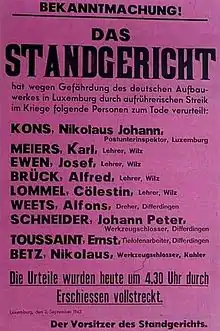 |CitationClass=تم تجاهله (مساعدة) - "Heim in Reich: La 2e guerre mondiale au Luxembourg - quelques points de repère". Centre National de l'Audiovisuel. مؤرشف من الأصل في 10 يونيو 2007. اطلع عليه بتاريخ 11 مايو 2013. الوسيط