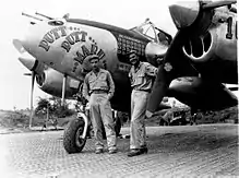 Col. MacDonald and Al Nelson in the Pacific with MacDonald's P-38J.