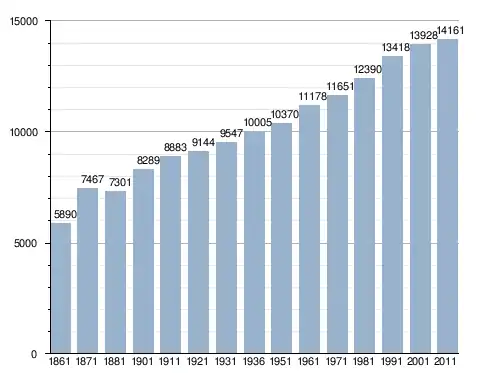 في سنة 1861 بلغ عدد السكان 5٬890 نسمة، وتطور العدد ليصل في سنة 2011 لـ 14٬161 نسمة.