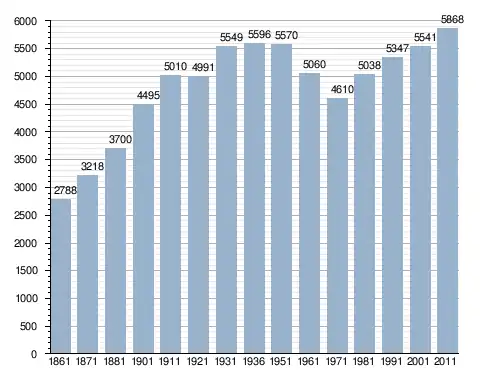 في سنة 1861 بلغ عدد السكان 2٬788 نسمة، وتطور العدد ليصل في سنة 2011 لـ 5٬868 نسمة.