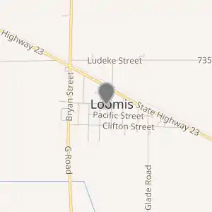 - "صفحة لوميس (نبراسكا) في GeoNames ID". GeoNames ID. اطلع عليه بتاريخ 6 مارس 2021. الوسيط